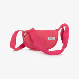 Pink crossbody bag for girls by Tommy Hilfiger, made in silky smooth recycled fabric. It has a zipped compartment and a small logo patch on the front for brand recognition. The adjustable grosgrain strap has a repeat, tonal logo for stylish and comfortable wear.