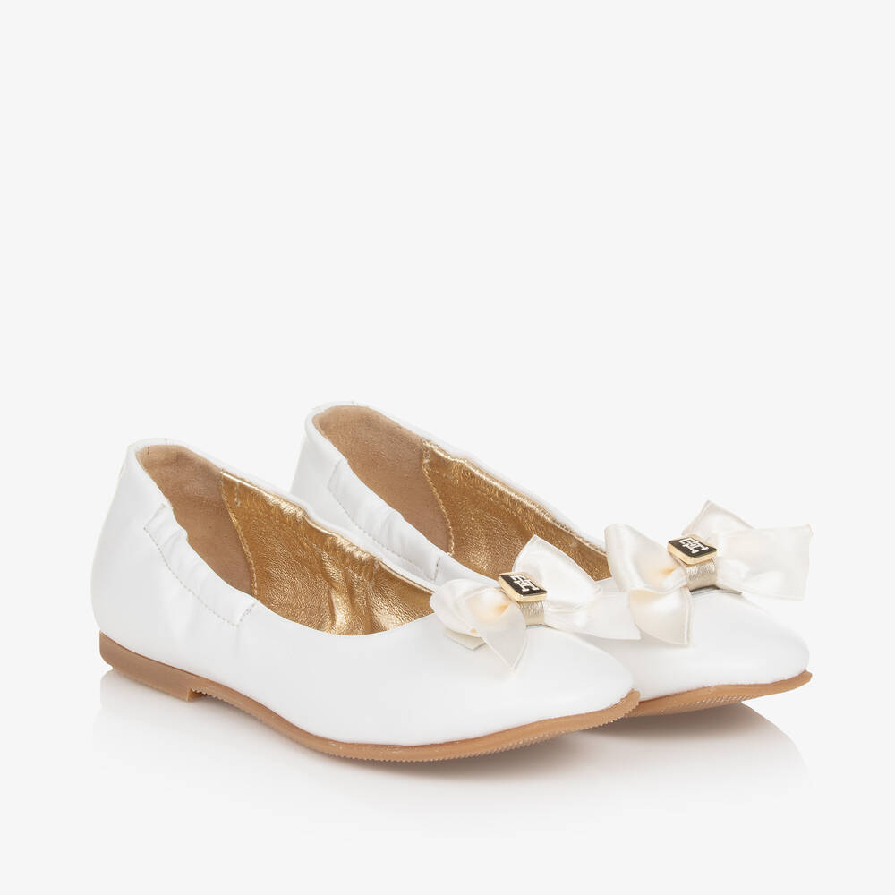 Girls White Faux Leather Ballerina Pumps