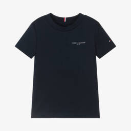 Navy blue T-shirt for boys and girls by Tommy Hilfiger, made in soft cotton jersey. Great for everyday casual wear, this crew neck style has a mini logo printed on the front and signature flag logo embroidery on one sleeve.