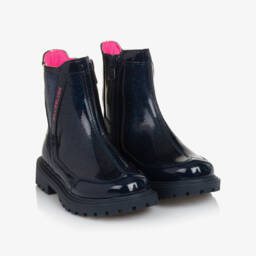 Navy blue hat for boys and girls by Tommy Hilfiger, knitted in soft cotton. Ideal for keeping warm during cooler months, it has a stylish white Fair Isle pattern, with a turned up brim and a signature flag logo on the front for a distinctive look. Topped with a fluffy pom-pom, this cosy hat adds a touch of fun to any outfit.