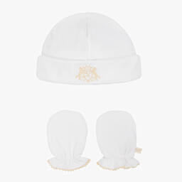 Beige Cotton Baby Hat & Mittens Set