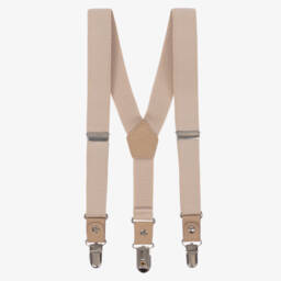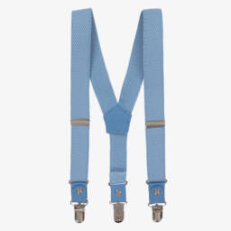 Sky blue clip-on braces for younger boys by Tutto Piccolo. They are elasticated and adjustable for a comfortable fit with silver clasps to attach to the waistband. Simply branded on the back, these versatile braces can be paired with trousers or shorts, adding sophistication to a smart or casual outfit.