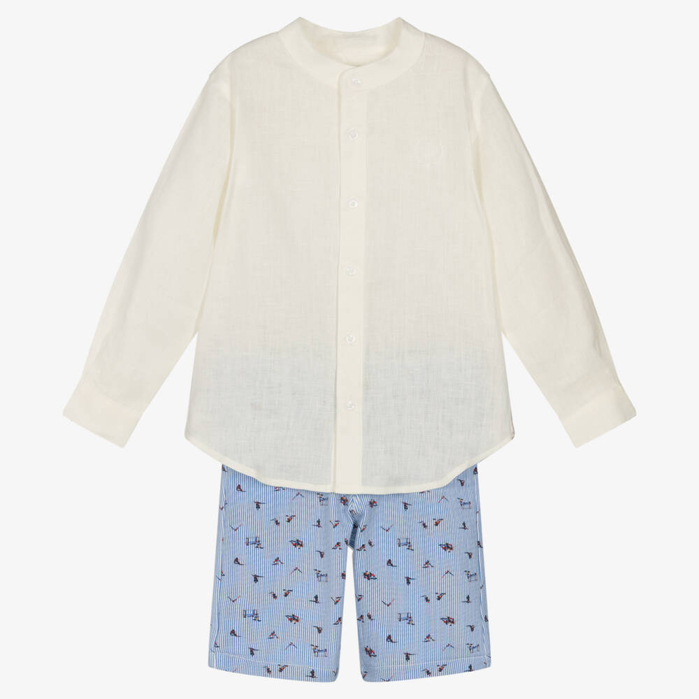 Boys Ivory & Blue Linen Shorts Set