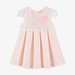A pale pink sleeveless cotton dress for girls by Spanish label Tutto Piccolo. This soft, lightweight and comfortable dress is decorated with beautiful, botanical florals for added elegance. The muted green ric rac-trimmed tiers, ruffle edges, and empire-line waist provide that nostalgic, classic feel. This sweet dress secures with a hidden zip on the back for neatness. It is lined with cotton-blend voile for comfort and modesty.
