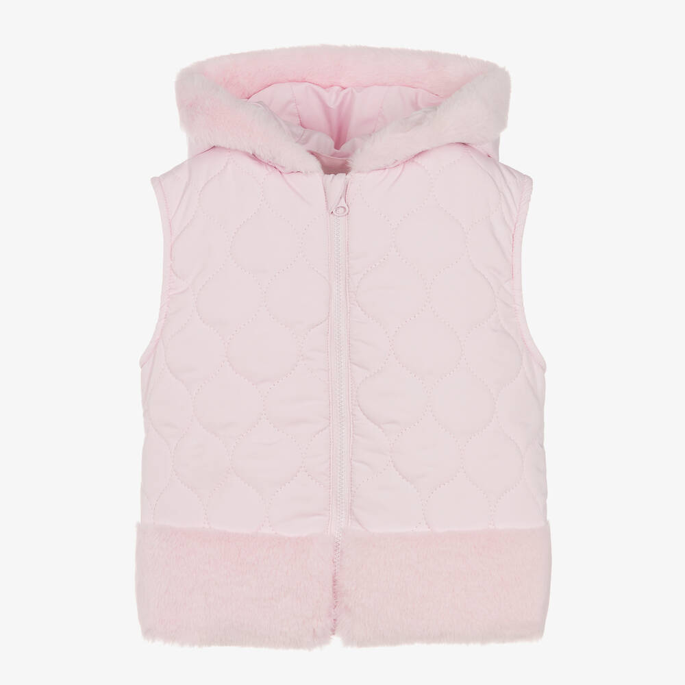 Girls Pink Puffer Hooded Gilet