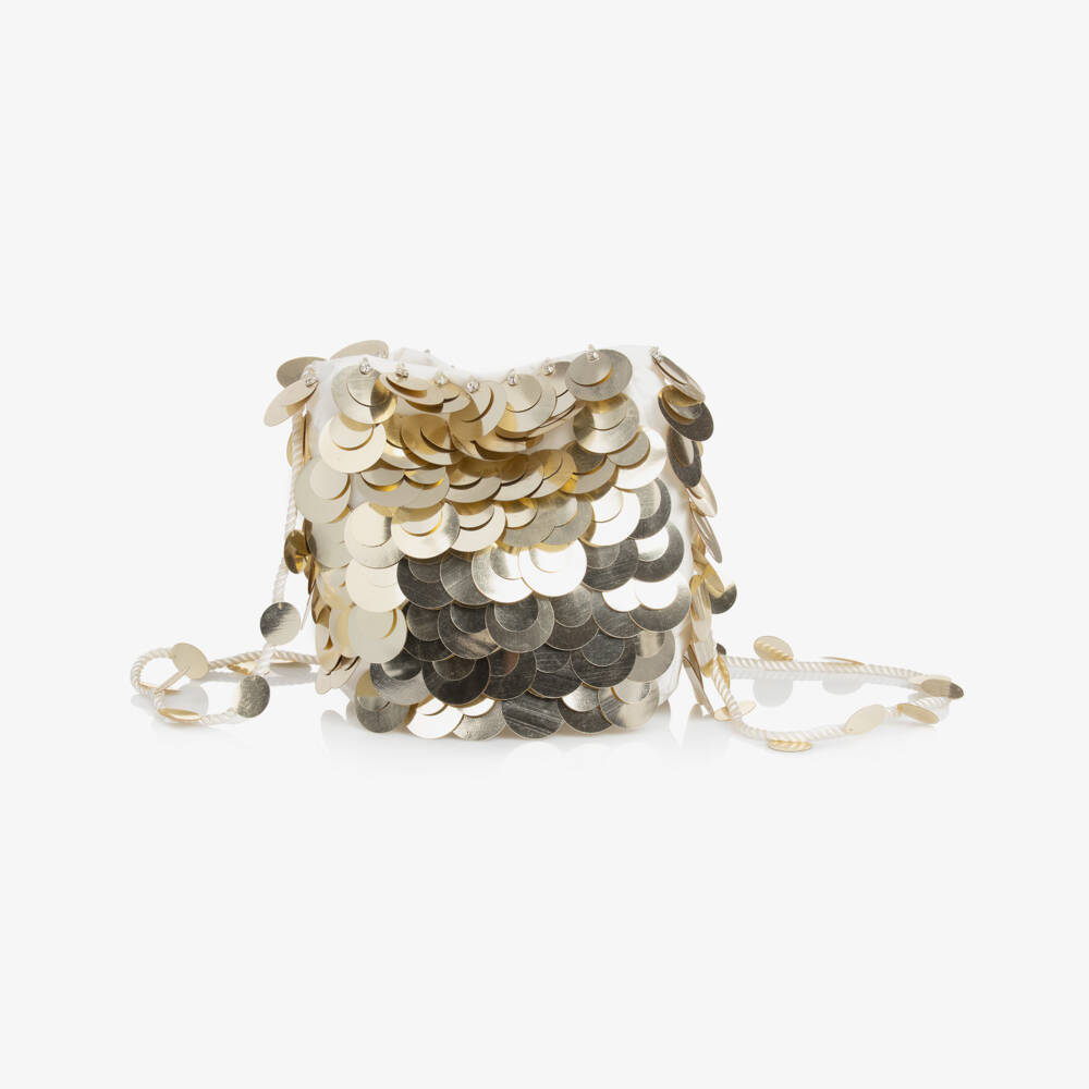 Girls Ivory & Gold Sequin Shoulder Bag (22cm)