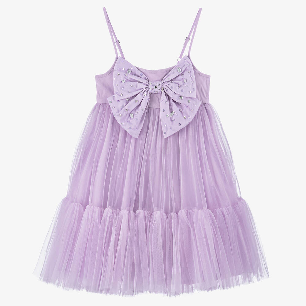 Exclusive to Childrensalon, this stunning lilac purple dress for girls is by Tutu du Monde. Made in layers of the finest tulle, it has a gorgeous bow on the bodice, hand-embellished in sparkling crystals and shimmering sequins. The adjustable shoulder straps ensure a comfortable fit and a frilled hem adds a pretty finish. It fastens neatly on the back with a concealed zip and is fully lined in lightweight voile for comfort. Items are made to last and become more lovely with wear as slight fading and fraying edges adds to their charm.