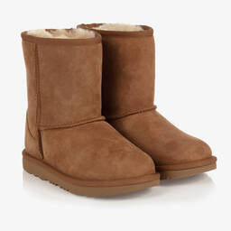 Black Classic II short boots for boys and girls by Australian brand, UGG. They are made from twin-face sheepskin with a soft suede exterior for a luxurious look and feel. These all-time favourite cosy boots have a soft cushioned insole for all day comfort and are lined in fluffy wool. The rubberised outer sole offers increased cushioning, traction and durability, whilst still being lightweight.