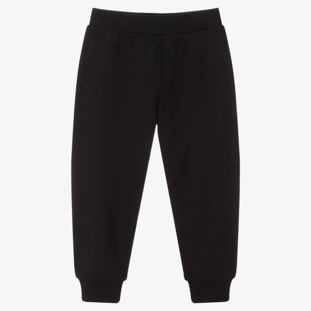 Soft black cotton joggers for boys from Italian luxury brand Versace, with their instantly recognisable gold Medusa logo appliqué on the back pocket.