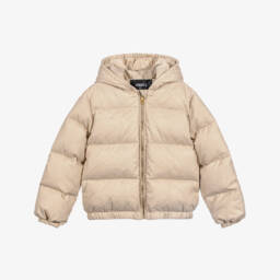 In a vibrant royal blue shade, this stylish hooded puffer jacket for boys is by luxury Italian label, Versace. Soft and silky, it is warmly padded with cosy down and lined with the iconic Barocco Foulard print for an unmistakable designer touch. For added appeal, the zip fastens with a gold-tone Medusa pull and the jacket has useful pockets concealed in the side seams.