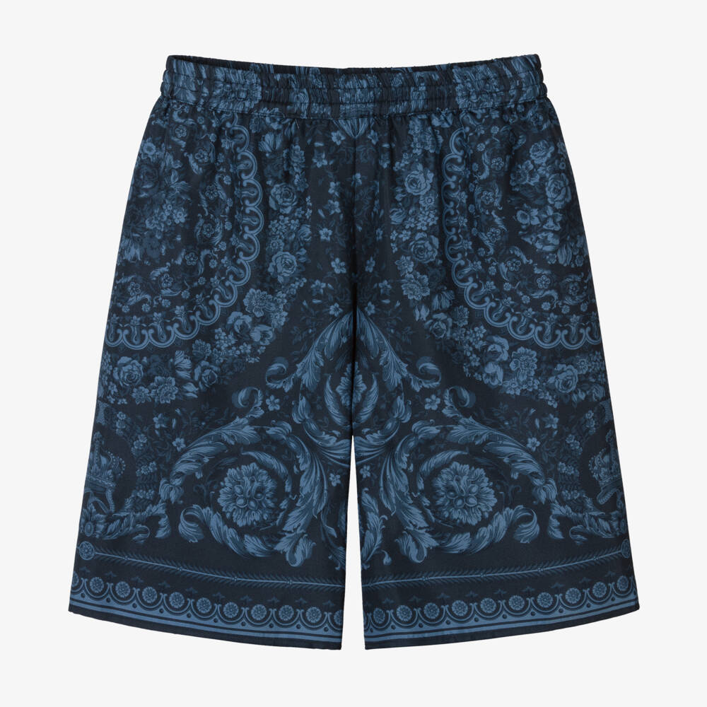 Boys Blue Silk Barocco Print Shorts
