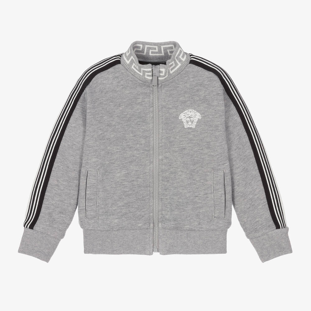 Boys Grey Cotton Medusa Logo Zip-Up Top
