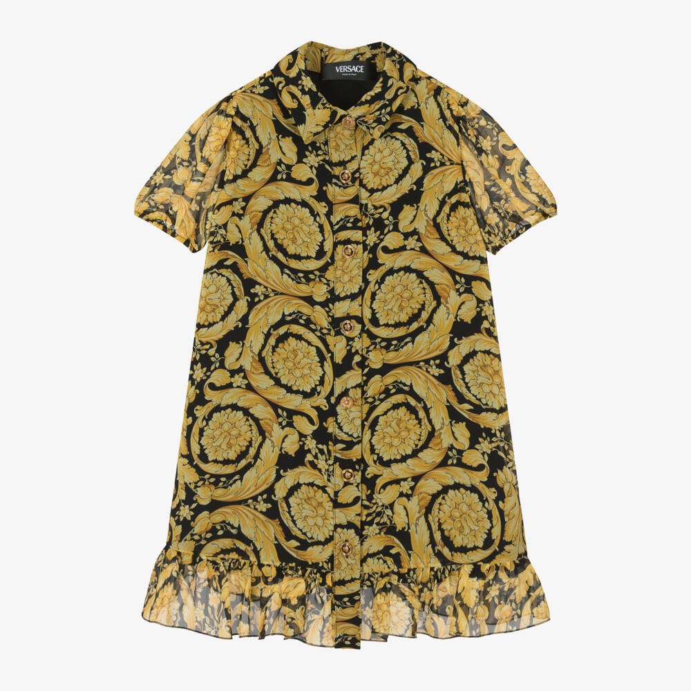 Girls Gold Barocco Print Silk Chiffon Shirt Dress
