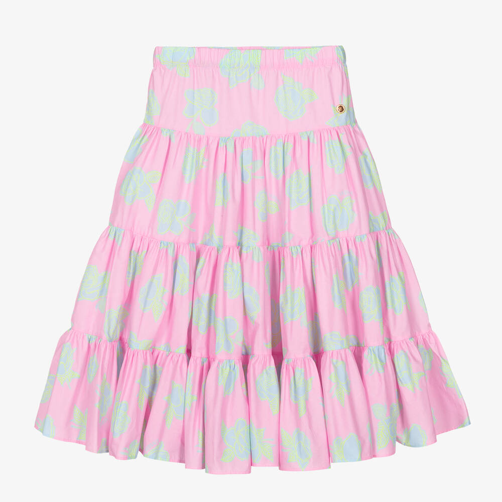 Girls Pink Rose Tiered Cotton Skirt