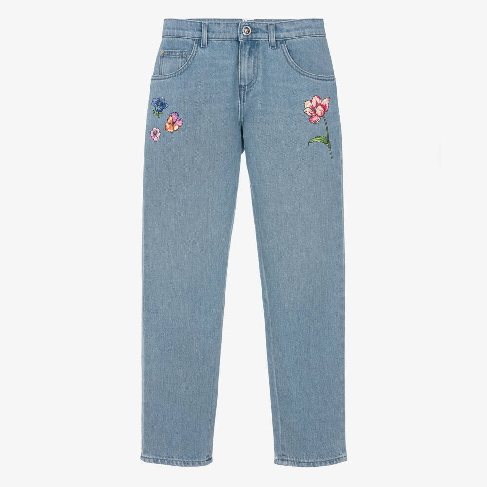 Teen Girls Blue Denim Blossom Jeans