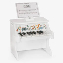 Stunning black mini grand piano for little boys and girls by Vilac, made in high gloss wood. Inspire your budding musician to become familiar with sweet melodies with this 30 key piano, painted with the brand's logo on the board. It has a raised lid with a holding mechanism to protect tiny fingers, a music rack and a little stool. Select songs to play from the included scores, developing your little one's visual, creative and fine motor skills. The piano and stool are easy to assemble, by simply screwing the legs to the base.
