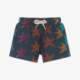 A turquoise blue polo shirt for boys by Vilebrequin, styled with an open placket for a relaxed look. It is made in soft and comfortable organic cotton piqué, with contrasting navy blue trims and a subtle embroidered turtle motif.