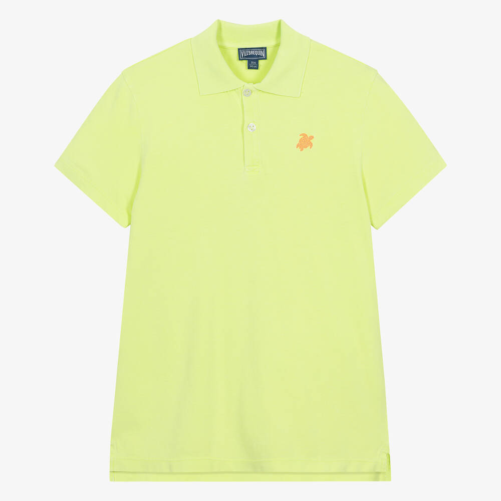 A cool, sporty style for teen boys, this bright green polo shirt is from Vilebrequin. Adding an instantly recognisable element, the resortwear designer's orange sea turtle logo is embroidered on the chest for a signature look. This short-sleeved top is made from a silky soft lyocell and cotton-blend, and styled with a ribbed collar and a button-up placket.