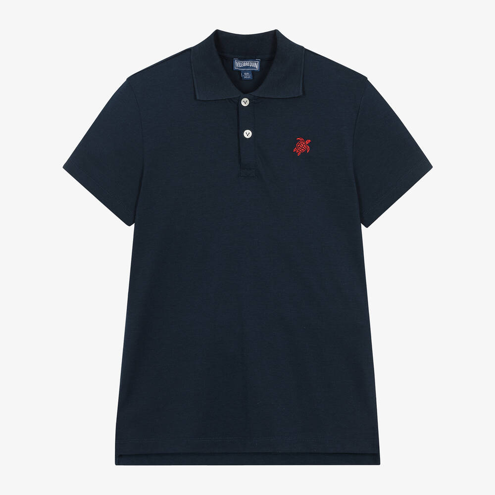A cool, sporty style for teen boys, this navy blue polo shirt is from Vilebrequin. Adding an instantly recognisable element, the resortwear designer's red sea turtle logo is embroidered on the chest for a signature look. This short-sleeved top is made from a silky soft lyocell and cotton-blend, and styled with a ribbed collar and a button-up placket.