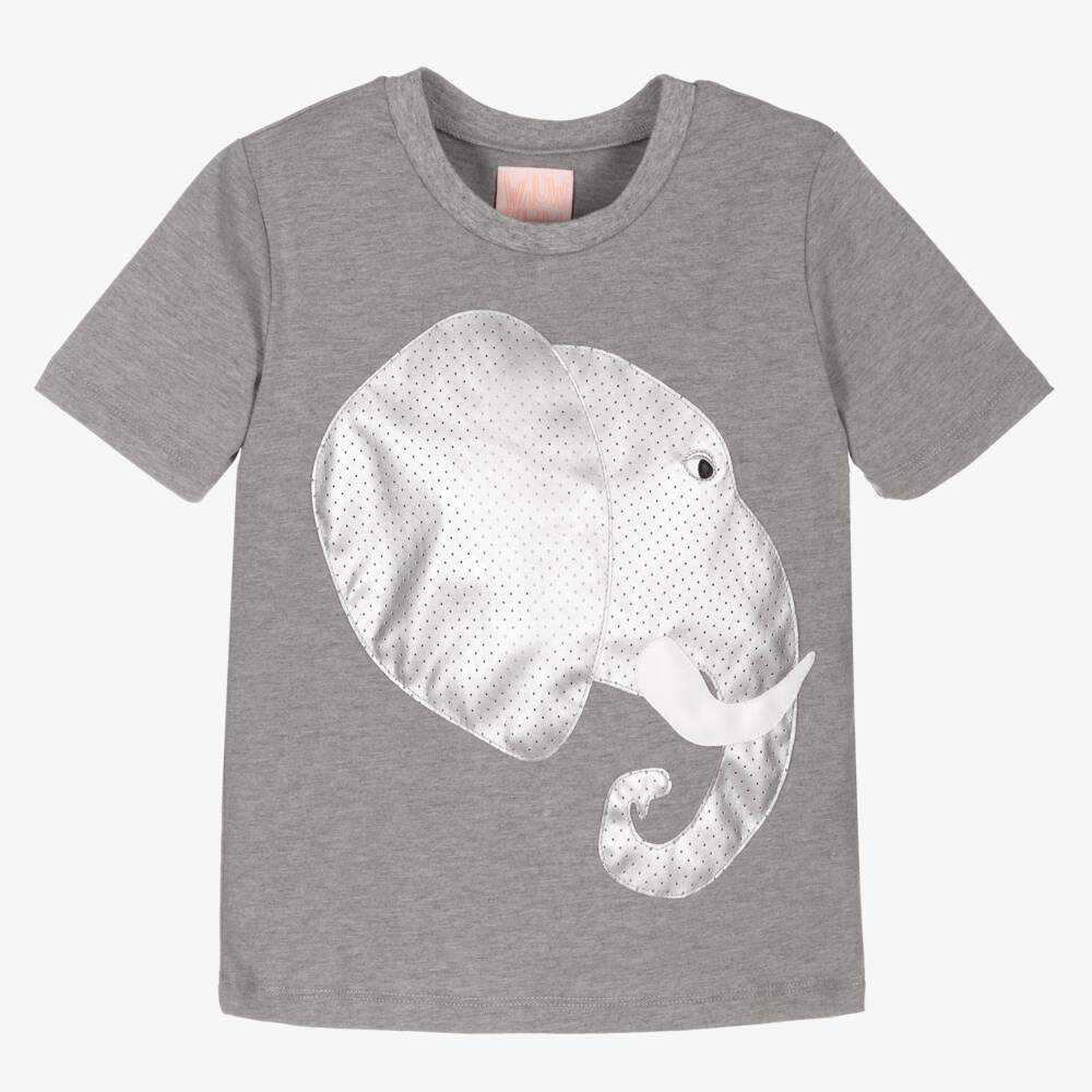 Little boys T-shirt from Wauw Capow by Bangbang. Made in super soft and stretchy, brushed jersey, it has a fun silver faux leather elephant appliqué with embossed detailing on the front.