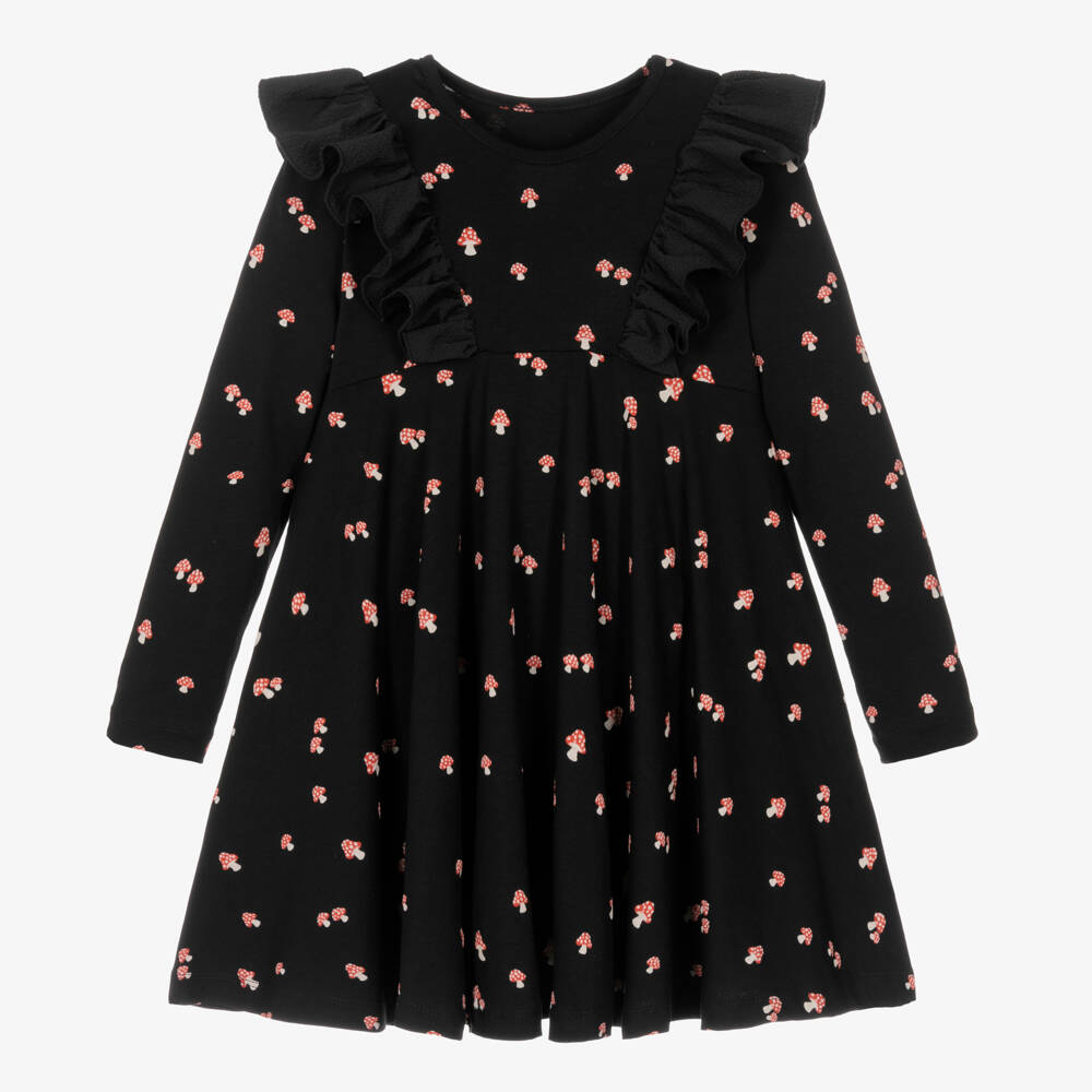 Girls Black Jersey Mushroom Dress