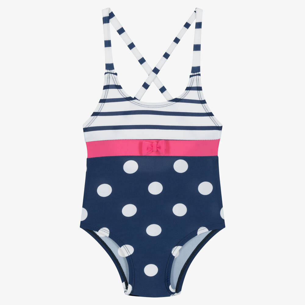 Baby Girls Navy Blue Polka Dot Swimsuit