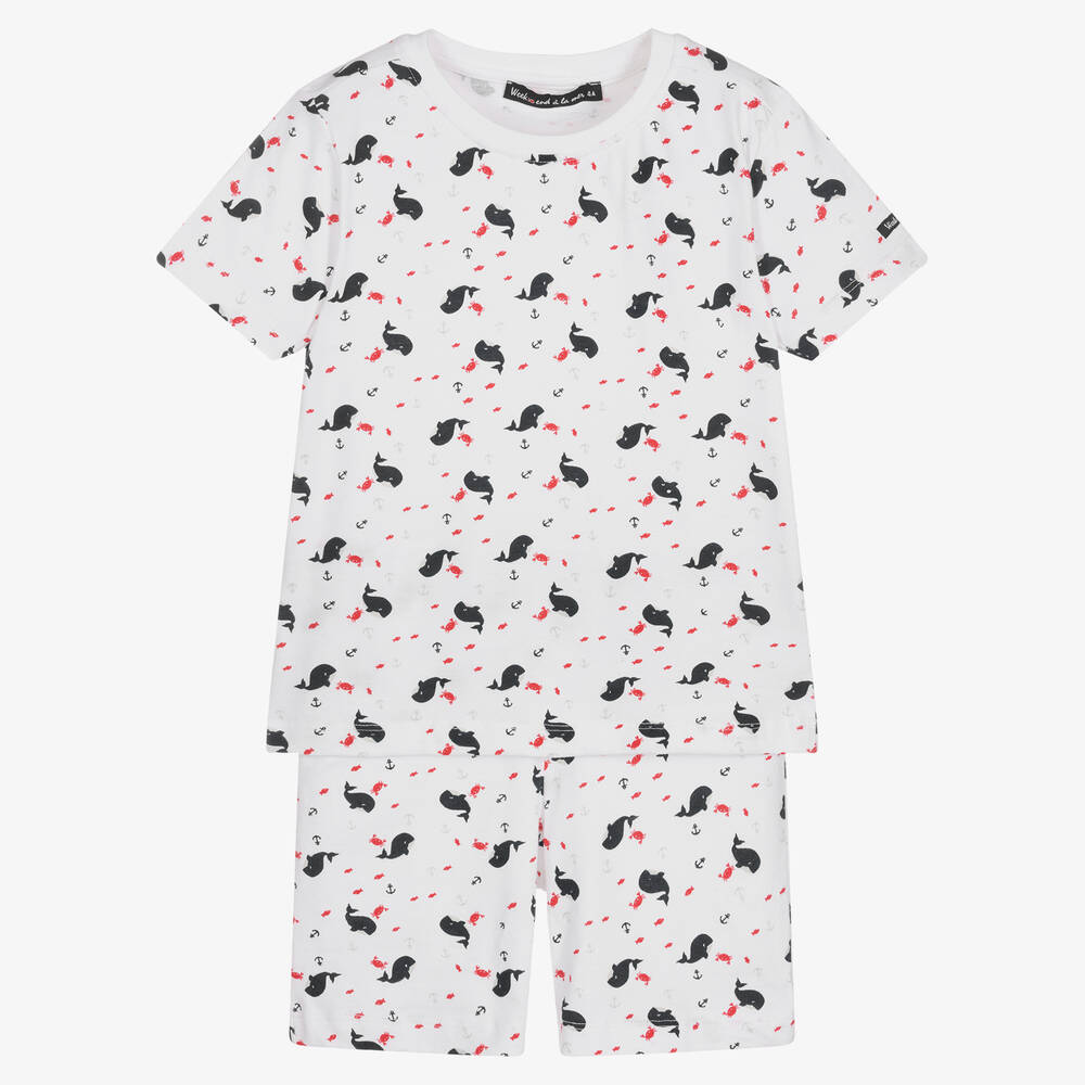 Easy-to-wear, this white shorts set for boys is by Week-end à la mer. Inspired by the ocean, these items are patterned with nautical whales, crabs and anchors. The brand's signature logo is patched onto the top. It pairs with matching shorts, which have an elasticated waistband for comfortable and convenient wear.