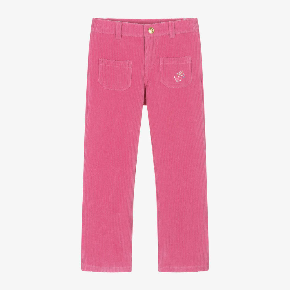 These girls bright pink corduroy trousers by Week-end à la Mer, are soft, stretchy and comfortable for casual days. They have sweet logo embroideries on both the front and back pockets and an adjustable waist for a great fit.