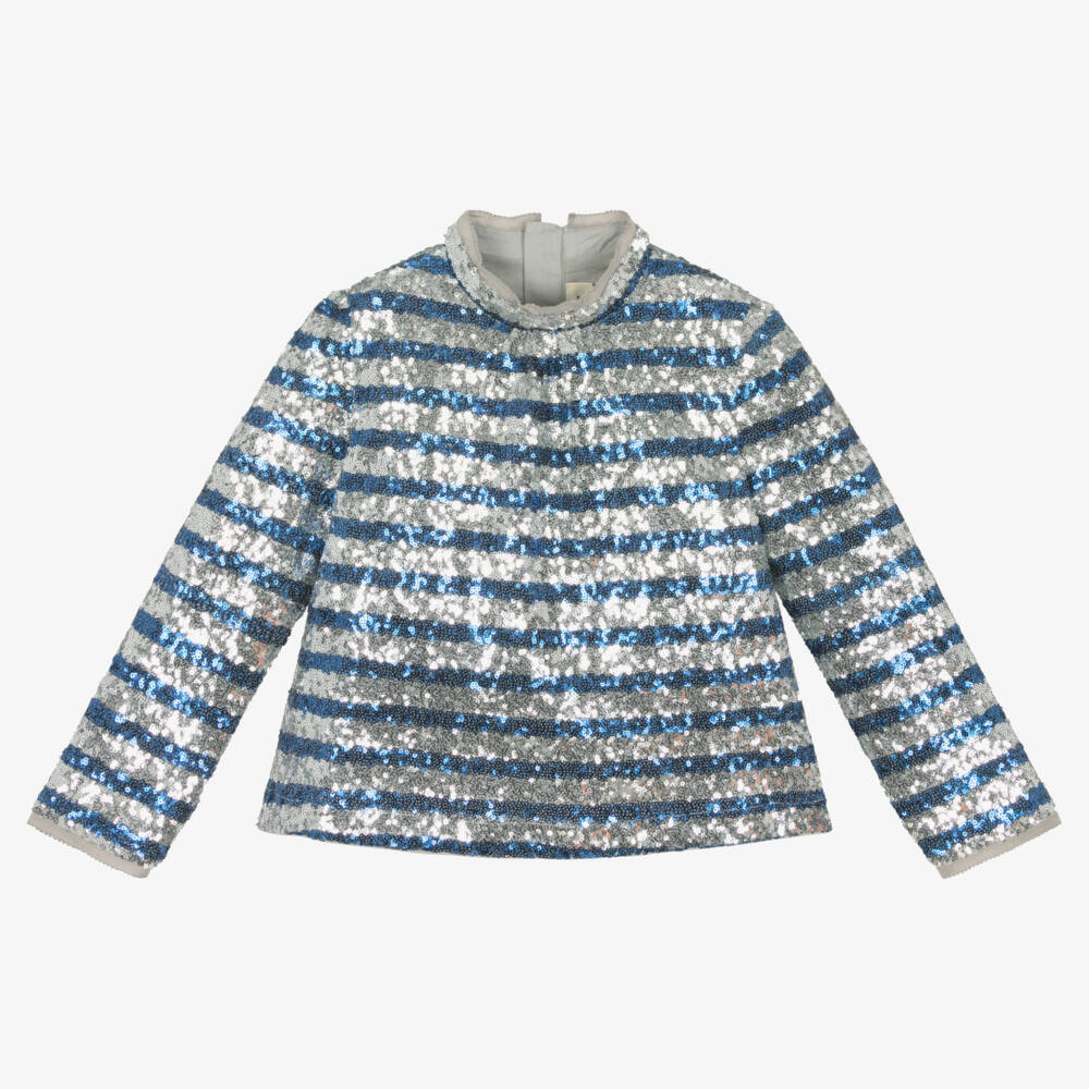 Girls Blue & Silver Striped Sequin Blouse