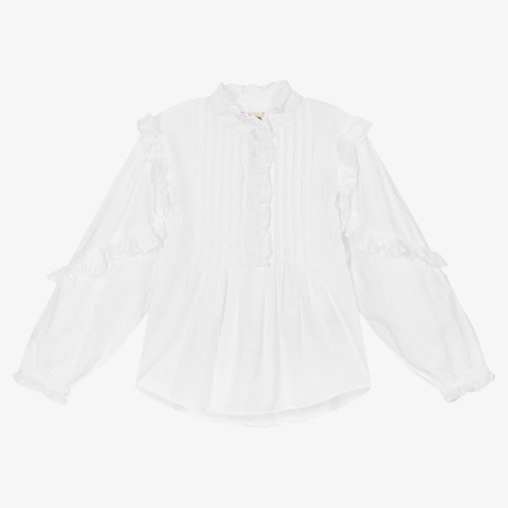 Girls White Cotton Ruffle Blouse